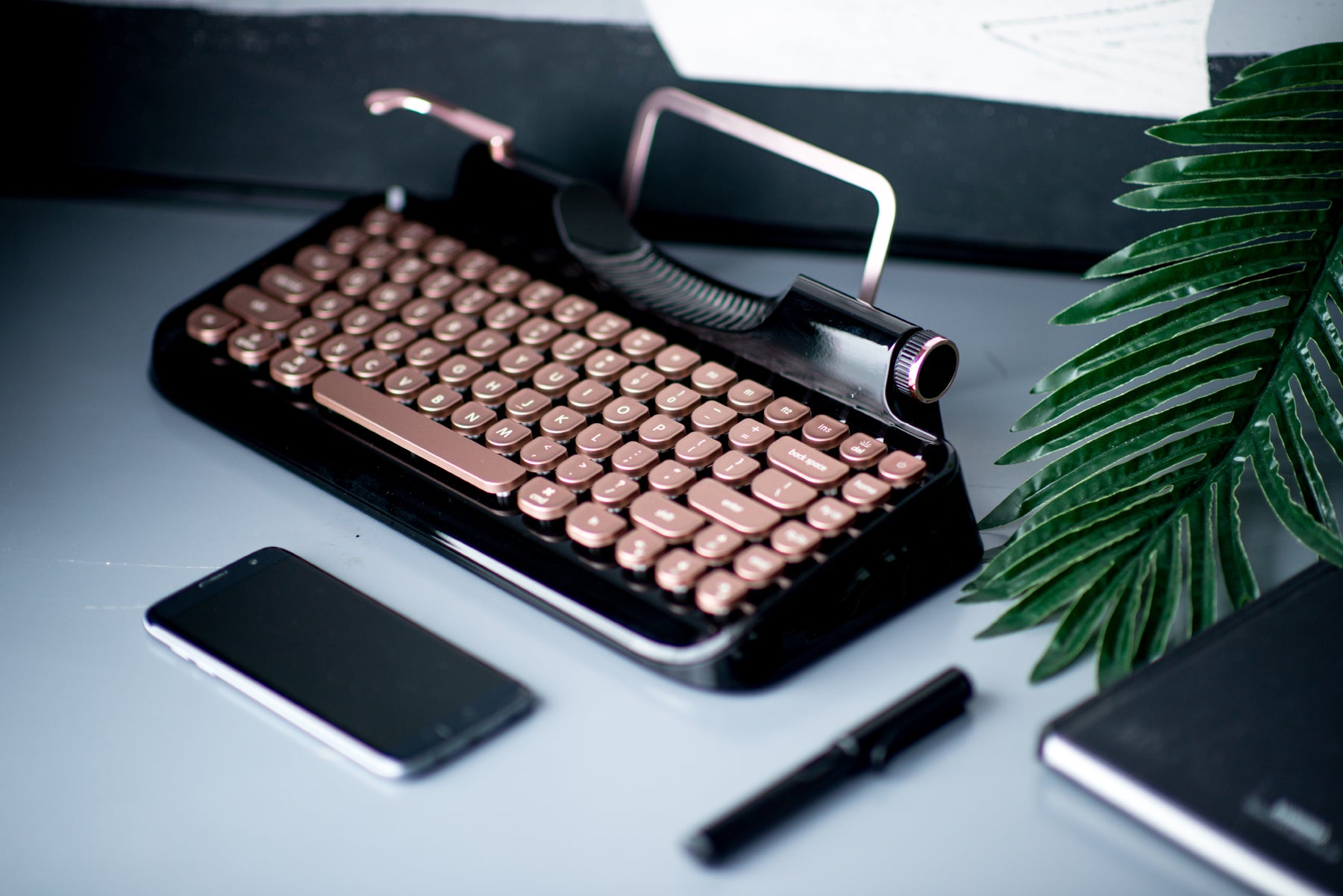 The design inspiration of the scroll knob comes from vintage manual typewriter; it serves a volume controller plus as an on/off switch. You can also use the multimedia key to control the music.